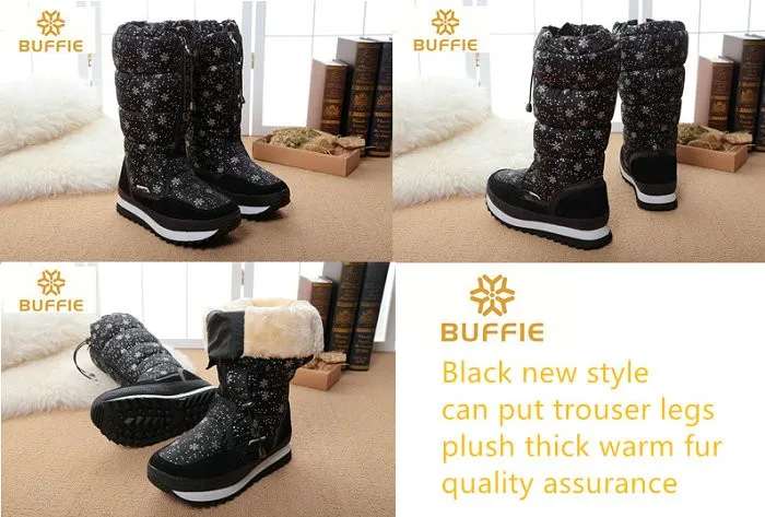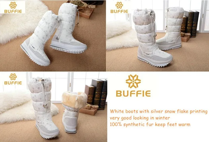 2016 new winter high women boots plush warm lady shoe plus size 35 to 41 easy wear zipper up girl white colour flower snow boots