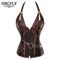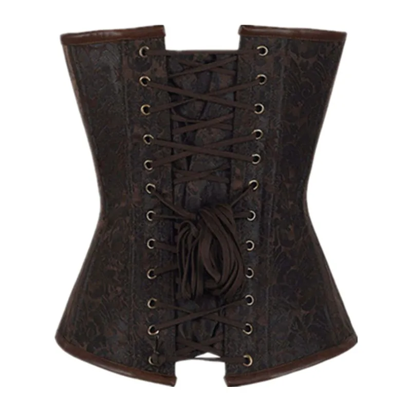 2016 hot 14 Steel Bone Steel Bone Overbust Corset Hourglass Chained Brown Steampunk Corset Espartilhos E Corpetes LC50014