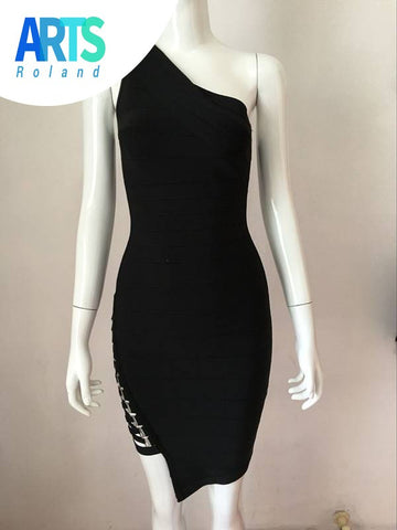 2016 Mulheres Sexy Vestido Sem Mangas Um ombro-Oco Out Cruz Preta Nu Bodycon vestido Da Atadura Da Celebridade Vestidos de Festa À Noite