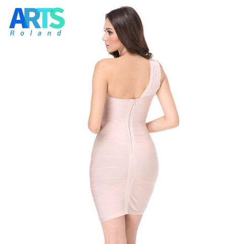 2016 Mulheres Sexy Vestido Sem Mangas Um ombro-Oco Out Cruz Preta Nu Bodycon vestido Da Atadura Da Celebridade Vestidos de Festa À Noite