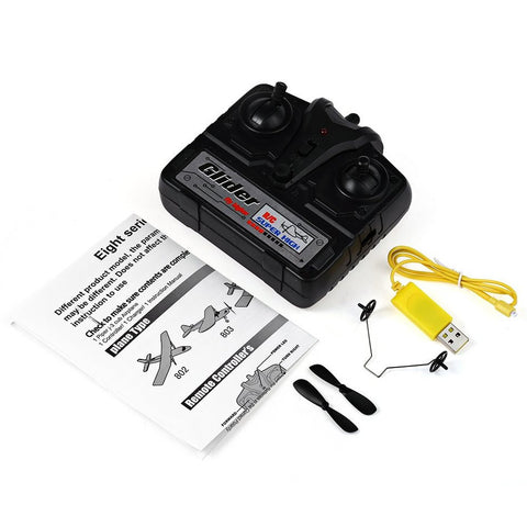 Package Contents: 1 x Glider, 1 x Controller, 1 x Adapter, 1 x USB Cable, 1 x Landing Gear, 2 x Blade