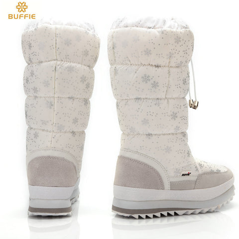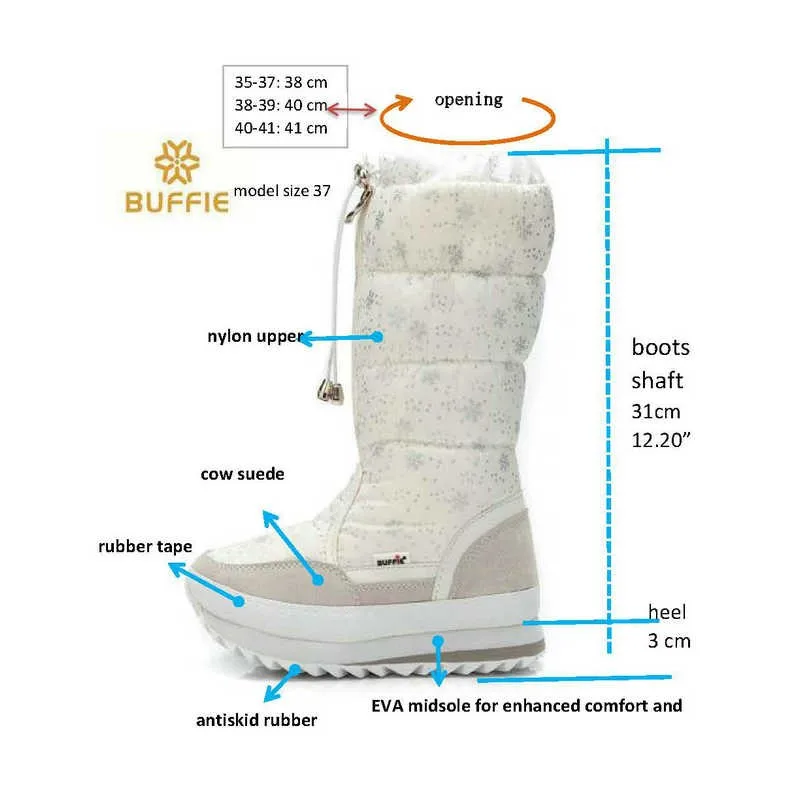 2016 new winter high women boots plush warm lady shoe plus size 35 to 41 easy wear zipper up girl white colour flower snow boots