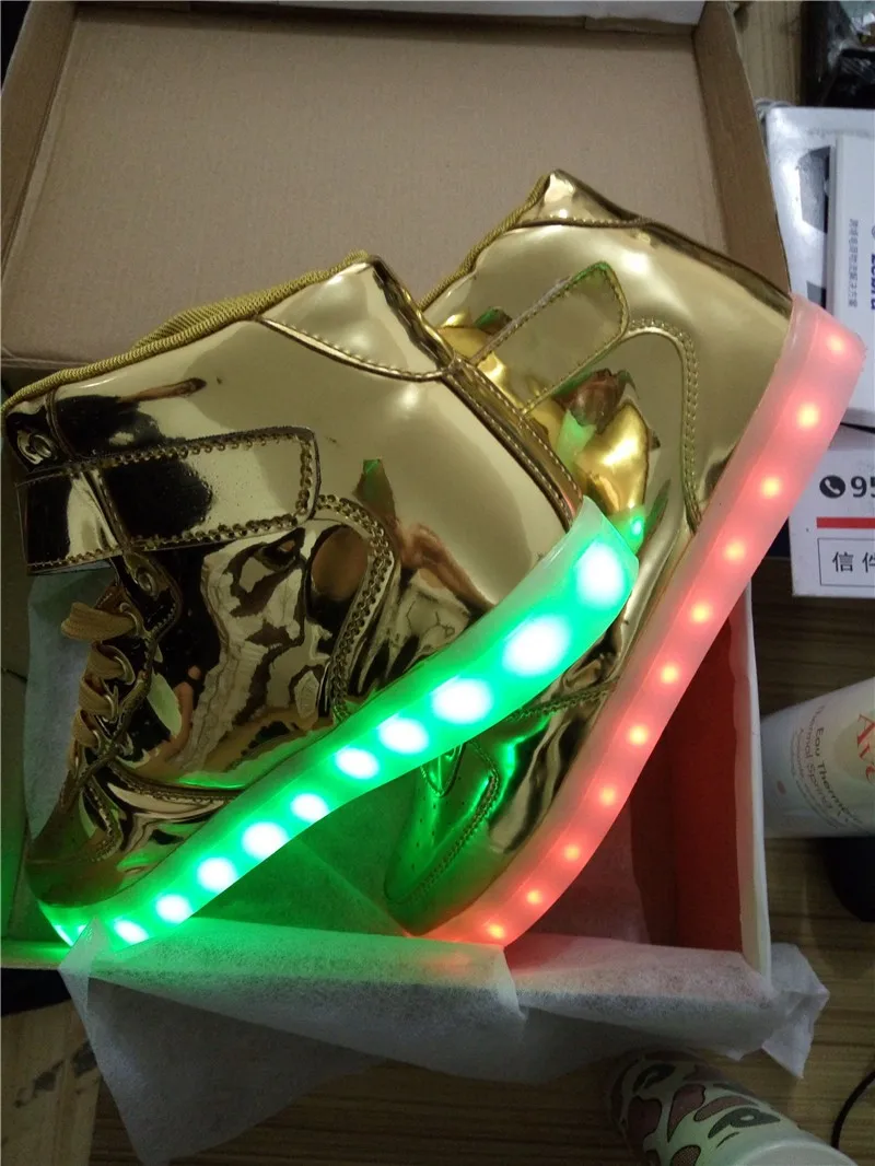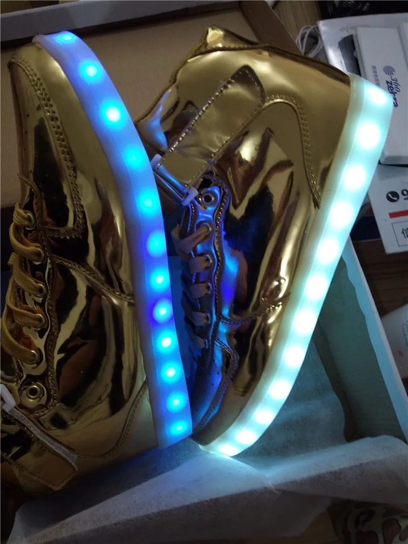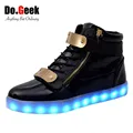 DoGeek LED 라이트 업 신발 골드 높은 최고 남성 zapatos 하늘에 불빛이 도라도 패션 LED USB 충전 실버 레드 남녀 캐주얼 신발