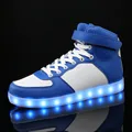 DoGeek 2016 Men&Women Fashion LED Light up shoes Blue&White Mixed Colors High Top Chaussure Femme Casual Shoes Women LuminousUSD 49.86/pair