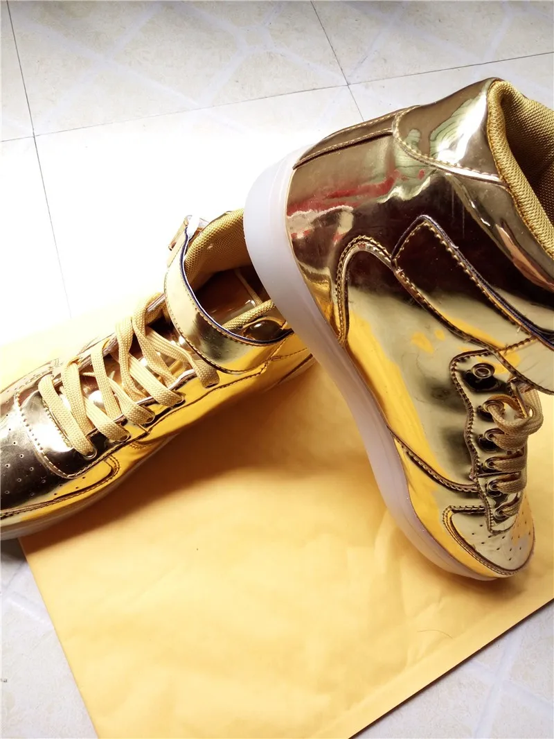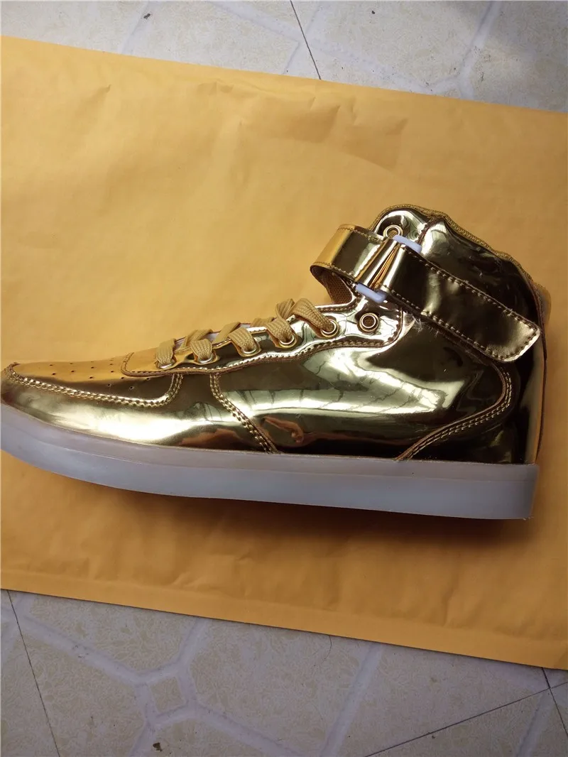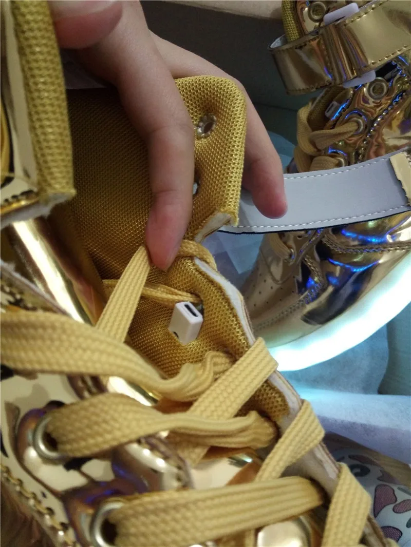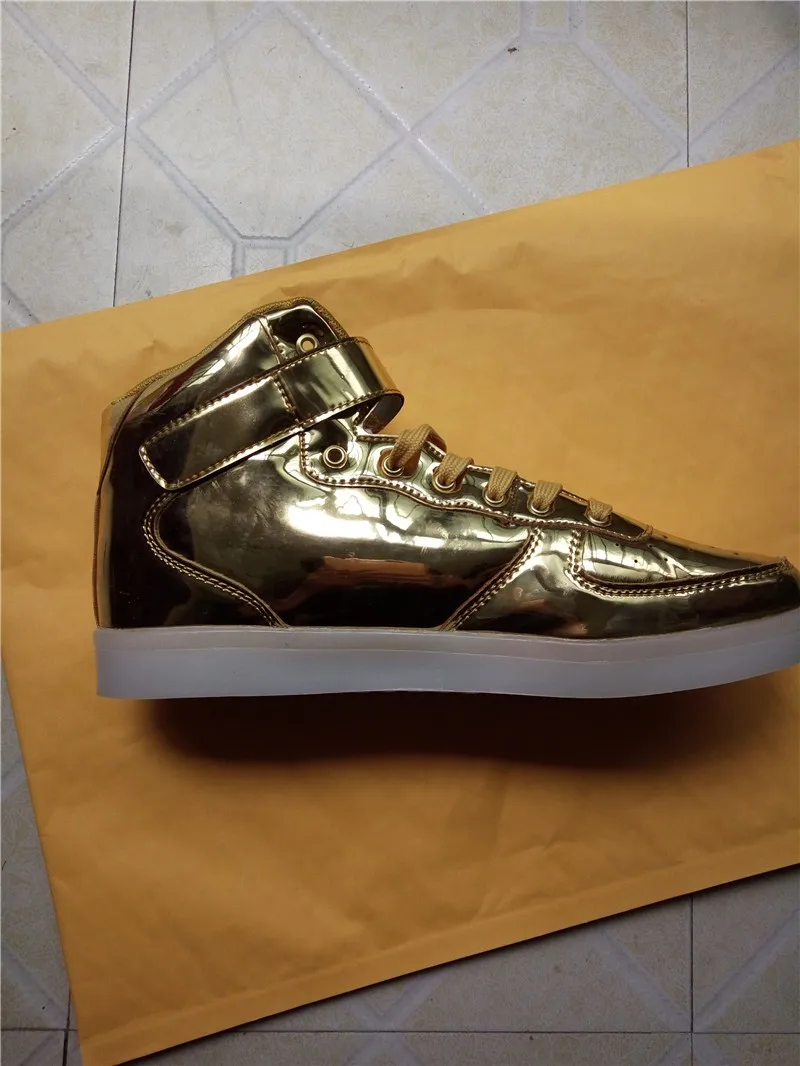 DoGeek LED Light Up Shoes Gold High Top Women and Men zapatos luces dorado Fashion LED USB Charge Silver Red Unisex Casual ShoesUSD 49.86/pair