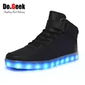 DoGeek LED Light Up Trainers Black White High Top Leather Men Women Casual shoes 7 colors Basket Femme Light Trainer AdultUSD 55.55/pair