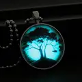 Tree Of life Glass Glowing Pendant Necklace Glow In The Dark Necklace Stainless Steel Long Chain Luminous Glass Cabochon N2363USD 1.60/piece