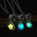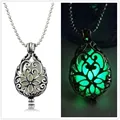 Fashion Glowing Stone Locket Necklace Jewelry Bronze Hollow Water Drop Glowing Pendant Silver Glow In The Dark Necklace N2377USD 1.60/piece