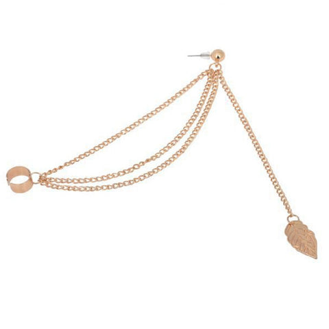 Mulheres Menina Elegante Punk Rock Cadeia Folha Tassel Dangle Ear Cuff Envoltório Brinco de Prata Brincos de Ouro Jóias 1 pcs
