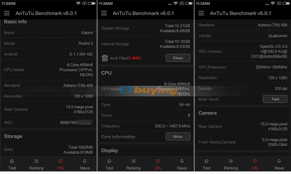 | Basic Information | Model | Xiaomi Redmi 3 |