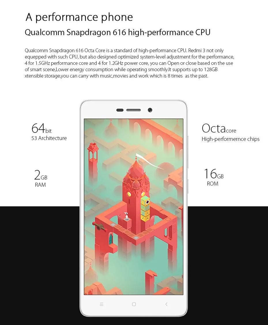 | CPU | Qualcomm Snapdragon 616 Octa Core up to 1.5GHz 64bit CPU | |