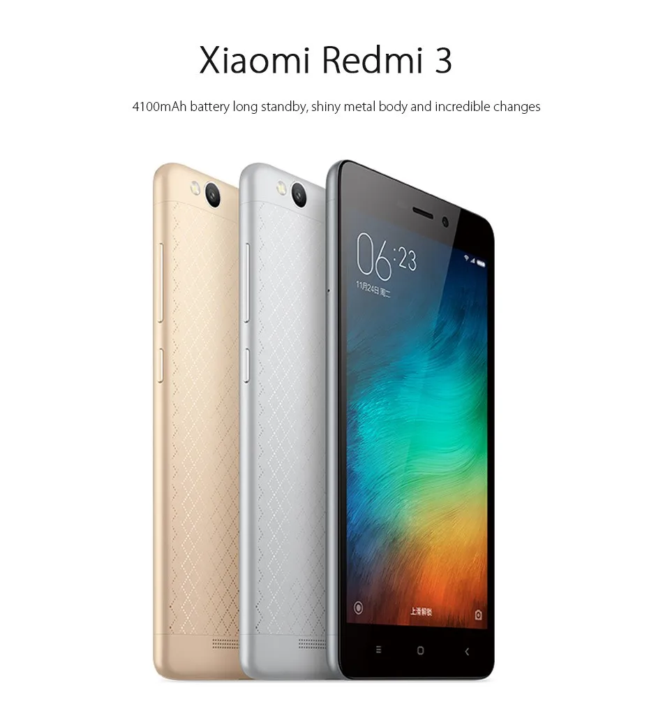 Osrigin al Xsiaomi Redmi 3 4G LTE Cell Phone Snapdragon 616 Octa Core 5.0" 1280x720 2GB RAM 16GB ROM 13.0MP 4100mAh Metal Body